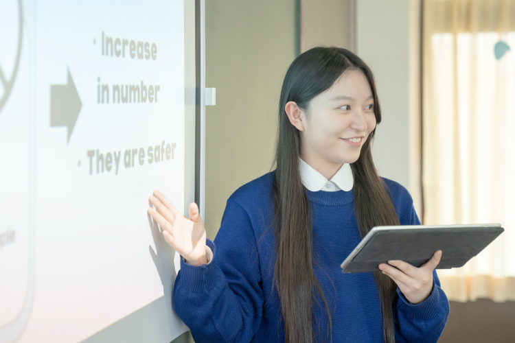 創立以来139年、宣教師の先生方を中心にコミュニカティブな英語力を重視し、最先端をいく英語授業を進めてきた宮城学院。中学校・高等学校では、すべての生徒に向けて4技能対応型の授業を展開。なかでも、スピーキング・リスニングに特化したオンライン英語プログラムを、いち早く授業に取り入れているのが特徴です。