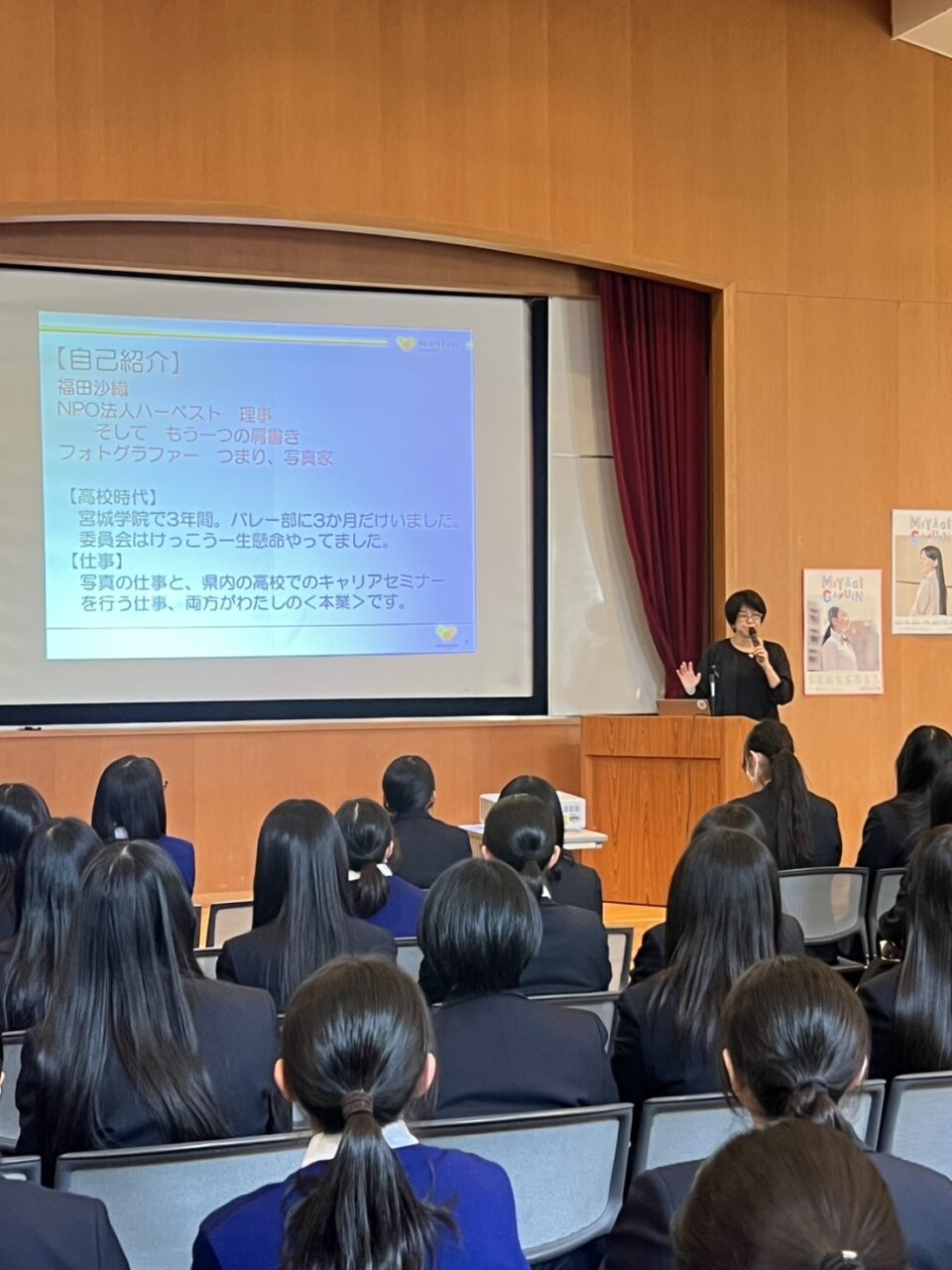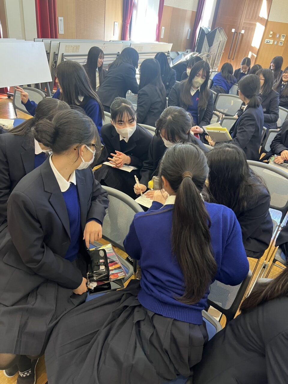 NPO法人ハーベストから福田沙織さんをお招きし、3月13日に行われる「キャリアセミナー」の事前学習を行いました。「将来どんな仕事をしたいか」「どんなふうに生きたいか」。自分の将来について考える大切な時間になりました。グループワークでは、生徒たちが知っている職業を出し合い、100以上挙げたグループもありました。中には、ほとんどの生徒が初めて聞く職種もあり、「知ること」が選択肢を広げることにつながると実感しました。